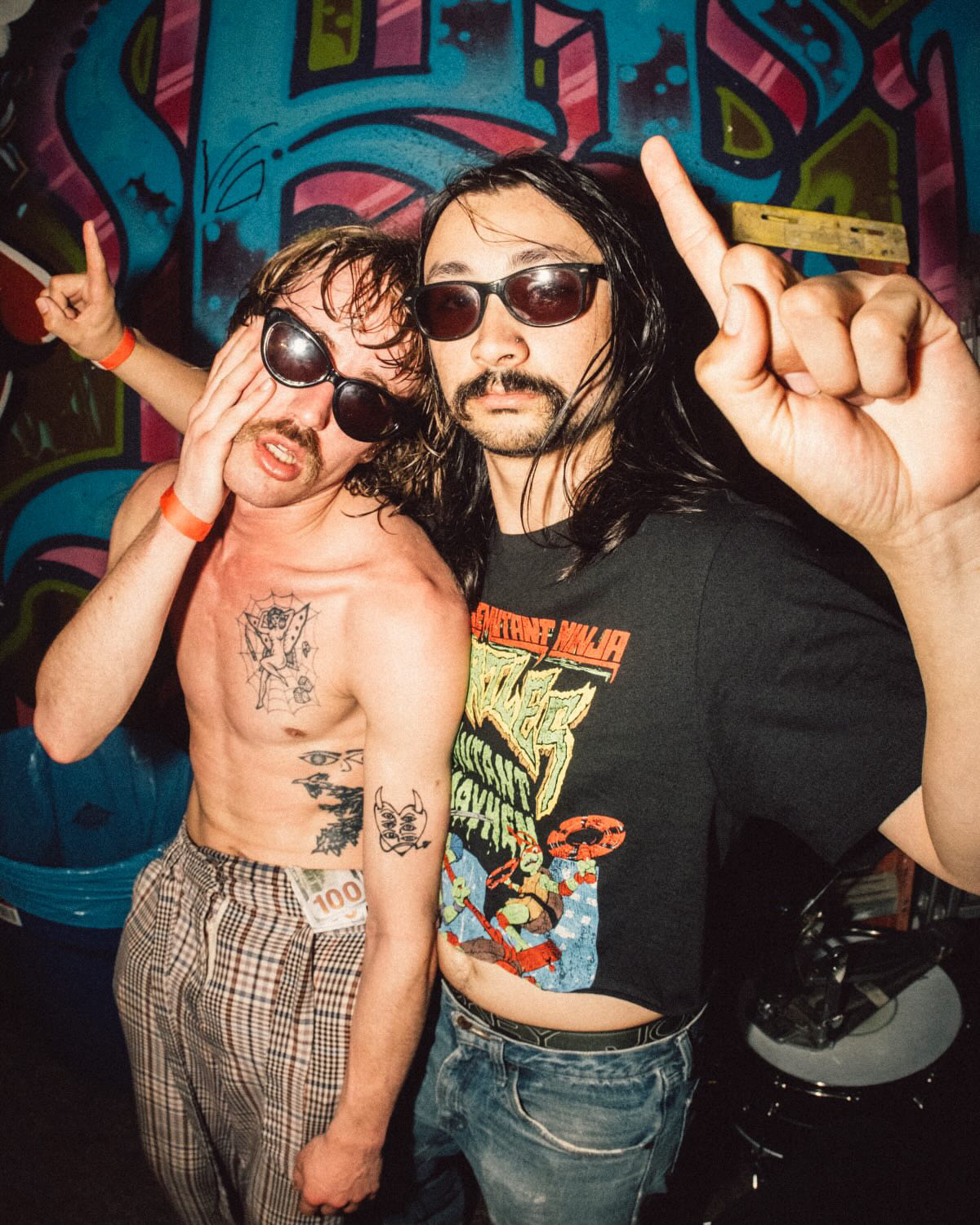 No life is spared at a PONS show. Supporting notable acts such as Gogol Bordello, Lambrini Girls, Laura Jane Grace, Geese, Vundabar, and A Place To Bury Strangers, PONS leave it all to bear on stage ; a deluge of smashed gear, contorting bodies, bright lights, throttling beats, and glam rock bravado.